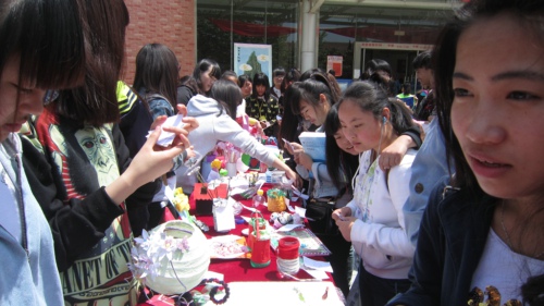 此次设计大赛的作品主题鲜明,内容丰富,整体美观,做工精细,涵盖了纸艺类、布艺类、编制类、自主创新类等多种形式,共收集到来自全校学生的作品60多件。这些作品经过整理和分类,在学院食堂门前一一展出,并由前来观赏的同学和老师现场投票进行评选。活动现场,大家点评作品,争相投票,场面热闹非凡,现场充满了欢声笑语,也留下了一个个精彩和令人感动的瞬间。