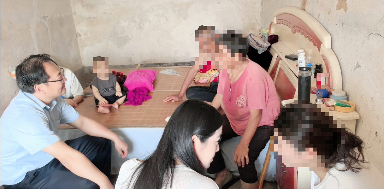 走访人员与学生一家人合影留念。