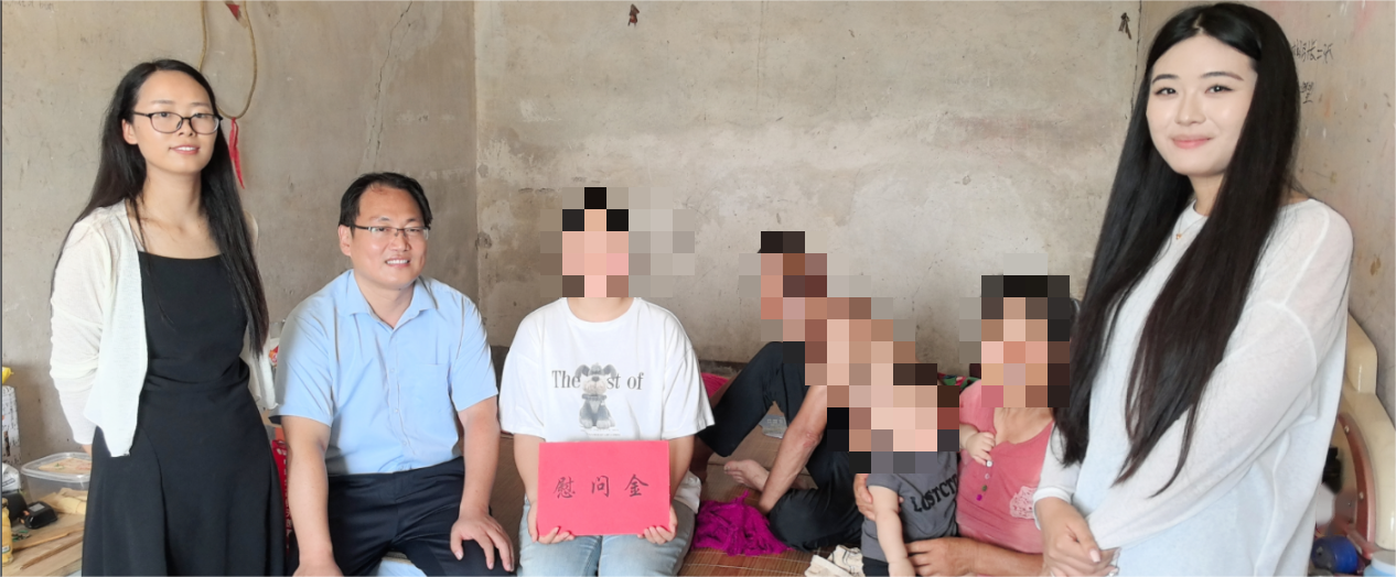 走访人员为每户家庭送上大米、食用油等生活物资及慰问金,将学院的关心带到走访学生家庭。
