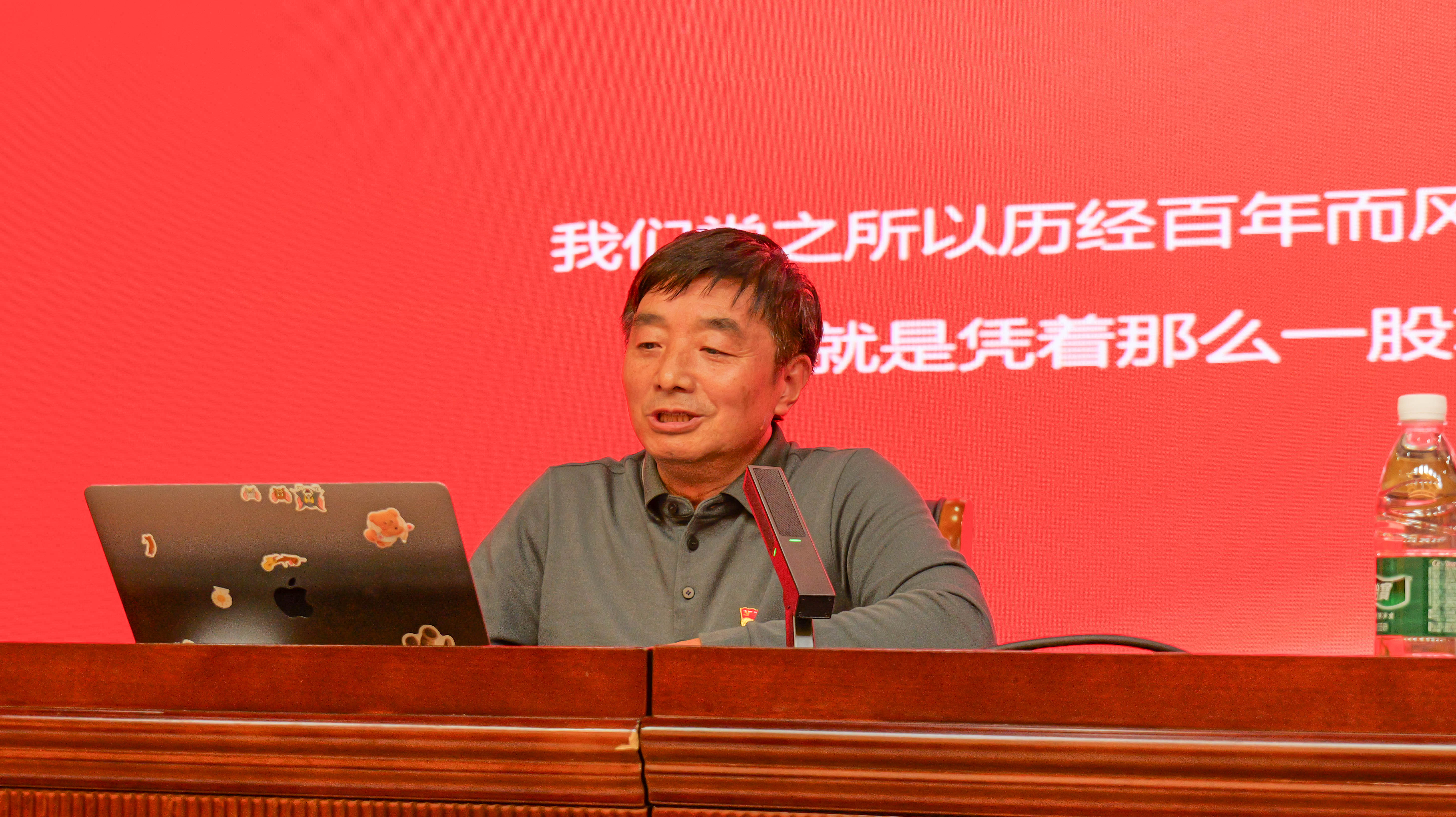 秦越华以“中国共产党人精神谱系”为主线,为在场师生带来了一场内容丰富、意蕴深远的讲座。讲座系统梳理了中国共产党人的精神谱系,生动阐释了其核心内涵与时代价值。回顾了革命战争年代的烽火岁月,通过详实的历史资料,重点讲述了淮海战役中我军将士不畏强敌、浴血奋战的英雄事迹和人民群众踊跃支前的感人故事,深刻揭示了“艰难困苦,玉汝于成”的奋斗真谛。此外,秦老师还结合自身经历谈学校建校69年以来的发展历程,讲述了学校始终与党和国家事业发展同频共振的奋斗历程,进一步增强了学生爱党爱国爱校观念,提升了对学校的认同感与归属感。