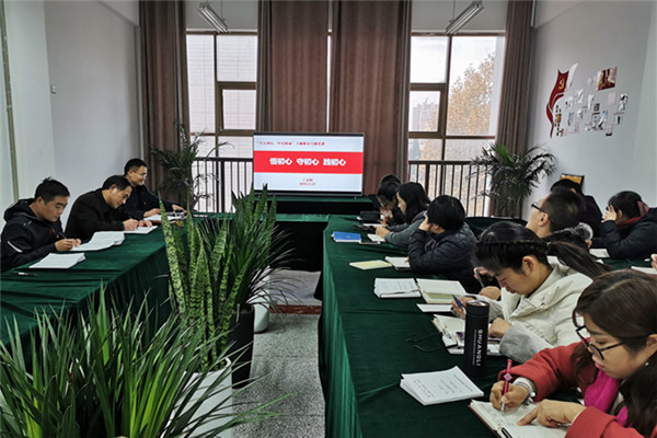 首先,丁永辉书记总结了前期党支部开展“不忘初心、牢记使命”的阶段性成果。接着,从我们党的初心和使命是什么,为什么要不忘初心、牢记使命,怎样才能不忘初心、不辱使命,做不忘初心、牢记使命的合格共产党员四个方面向全体党员做了详细讲解。勉励全体党员要强化责任担当,坚持贯彻落实十九届四中全会精神、要将有效开展“不忘初心、牢记使命”主题教育与学院发展及本职工作结合起来,要在教书育人中主动守初心、担使命。要求每位党员要以一名合格共产党员的标准对照自己,查找不足,为下一步主题教育“找差距、抓落实”环节做好准备。