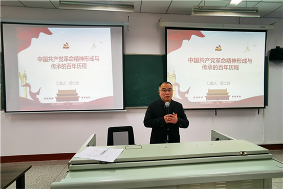 宣讲会上,郭处长以“中国共产党革命精神形成与传承的百年历程”为题,讲解了新民主主义革命时期,党领导人民大众为实现民族独立和人民解放进行伟大革命斗争,形成了红船精神、井冈山精神等革命精神,蕴含着为有牺牲多壮志,敢教日月换新天的开拓品质和豪迈情怀。社会主义革命和建设时期形成了抗美援朝精神、铁人精神、“两弹一星”精神等一系列革命精神,成为鼓舞中国人民战胜困难、勇往直前、不断取得新胜利的巨大精神力量,集中反映了中国共产党人咬定青山不放松、不破楼兰终不还的精神面貌。改革开放以后,党团结带领全国各族人民,解放思想、实事求是、大胆地试、勇敢地闯,干出了一片新天地。展现了敢闯敢试再出发,一棒接着一棒跑的奋斗姿态。